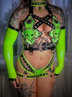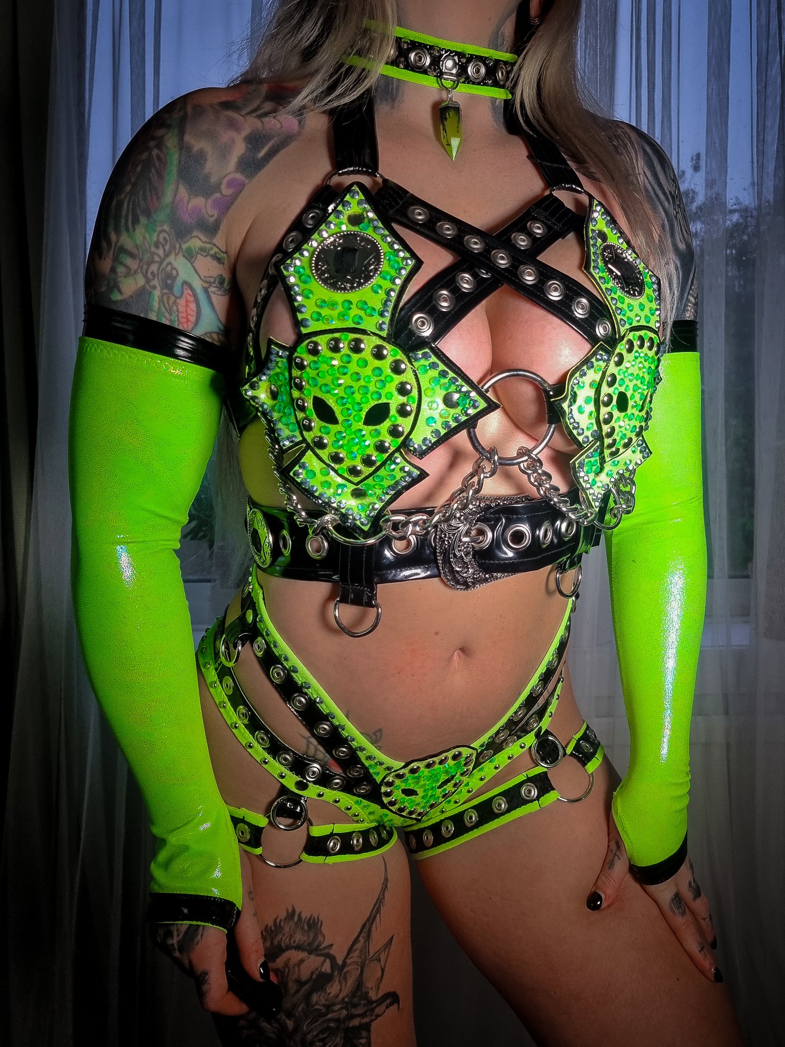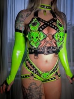 - 4 Piece set includes Bra/Briefs/Sleeves/Choker